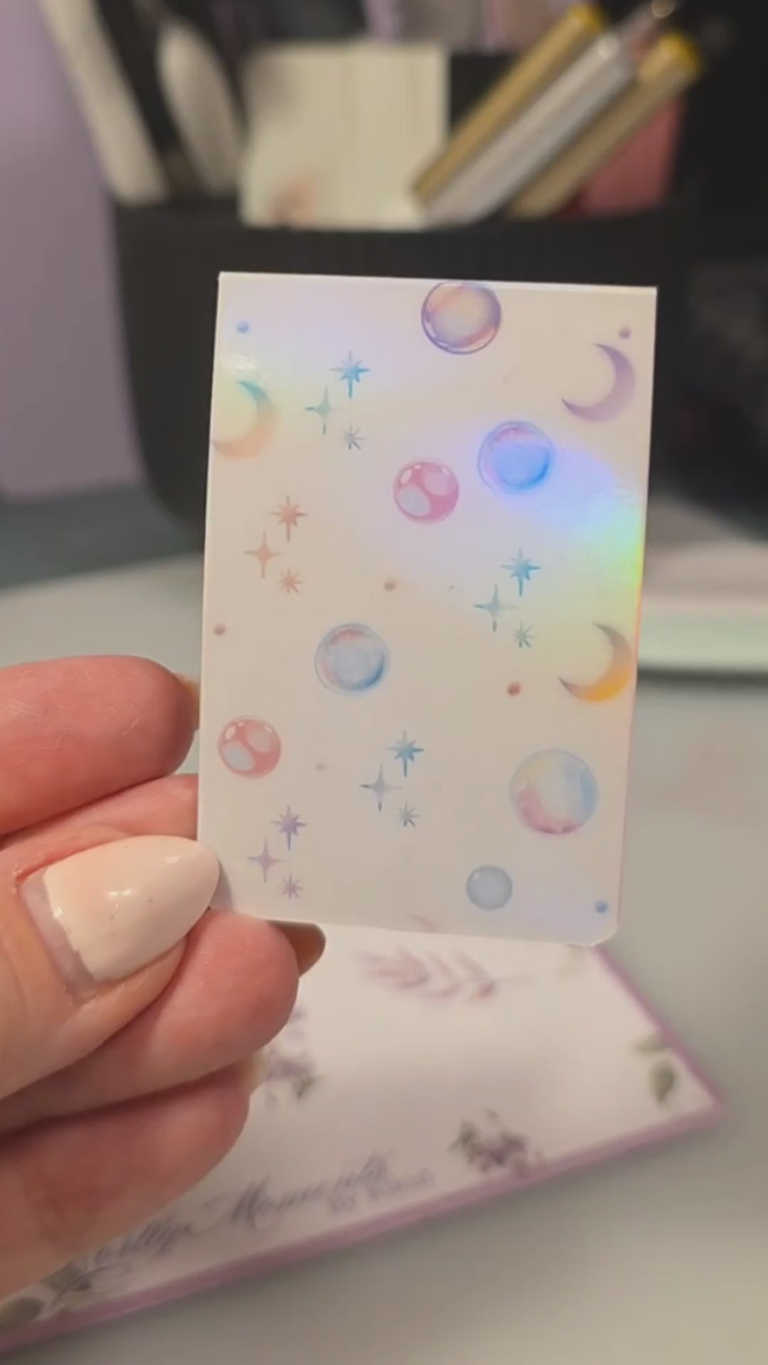 Bokmerket har magnetlukking som holder det godt på plass uten å skli, og det er travel-sized så det passer perfekt i både skolebøker, notatbøker og romaner. Overflaten har en holografisk effekt som skinner fint i lyset, og bokmerket er laminert for ekstra holdbarhet.